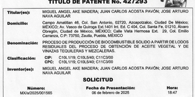 Nopalimex obtiene título de patente de la "Producción de biocombustible sólido a partir de lodos residuales del proceso de obtención de aceite vegetal y de vinazas tequileras y mezcaleras." 03 de septiembre de 2025