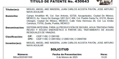 Nopalimex obtiene título de patente del "Sistema integral para la producción de biogás, agua tratada para reuso y sólido energético a partir del tratamiento de aguas residuales de vinazas." 15 de diciembre de 2025